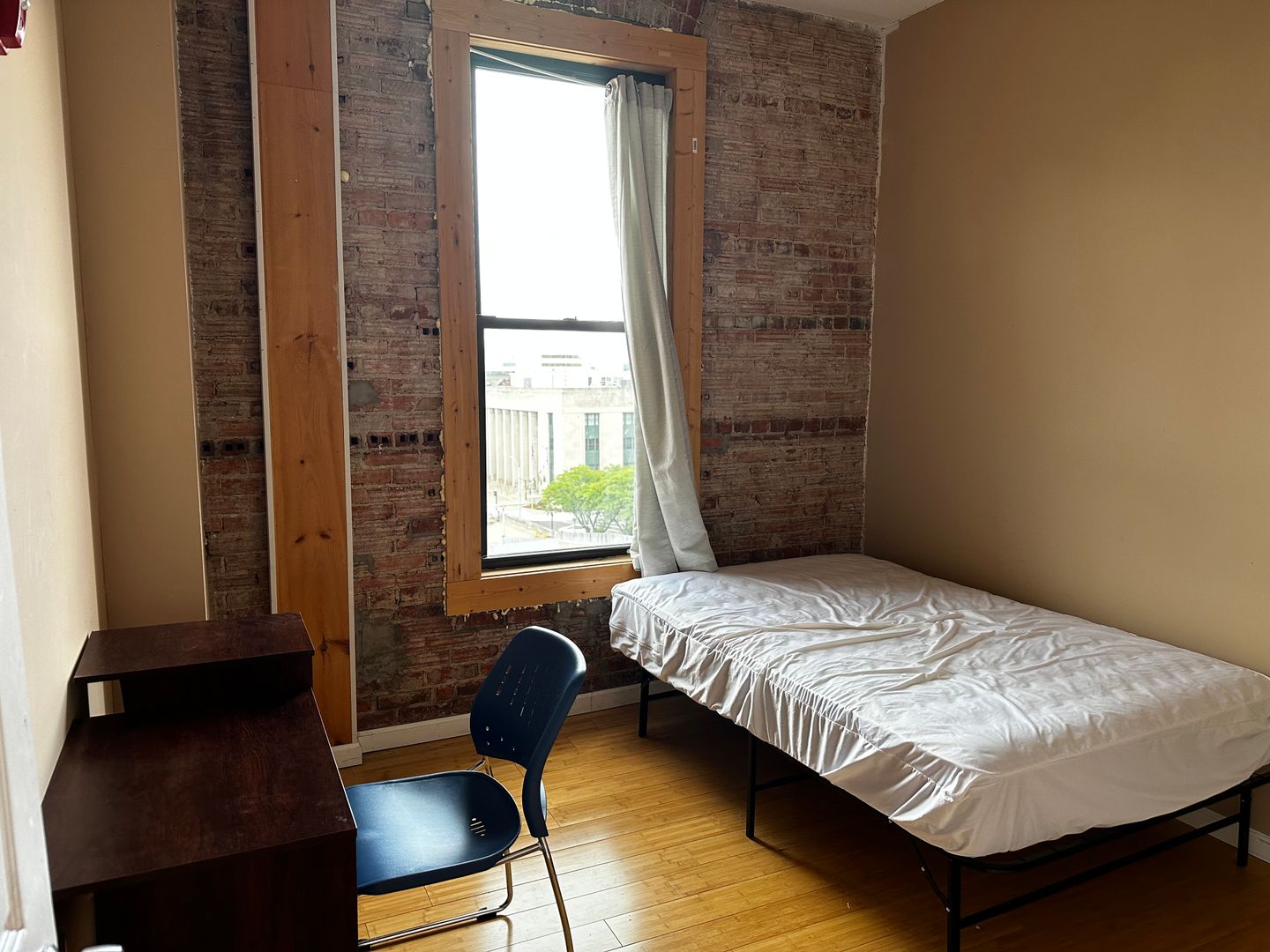 Great apt on the top floor. Exposed brick and high ceilings in every bedroom which captures the natural beauty of the building. Nice size apt for 4 friends.